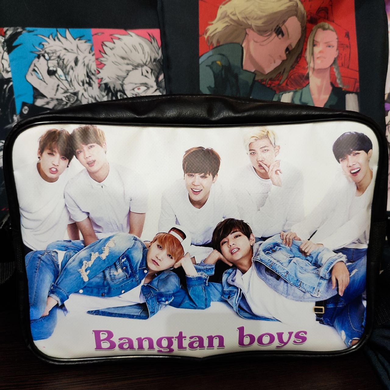 Тип тканини: Вініл; екошкіра Принт: БТС Розміри: А4;21х32см Пошив: горизонтальний Сумка з аніме принтом: гарно підійде для ноутбука, планшета та книжок. 450 ₴ Немає у наявності